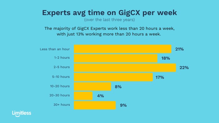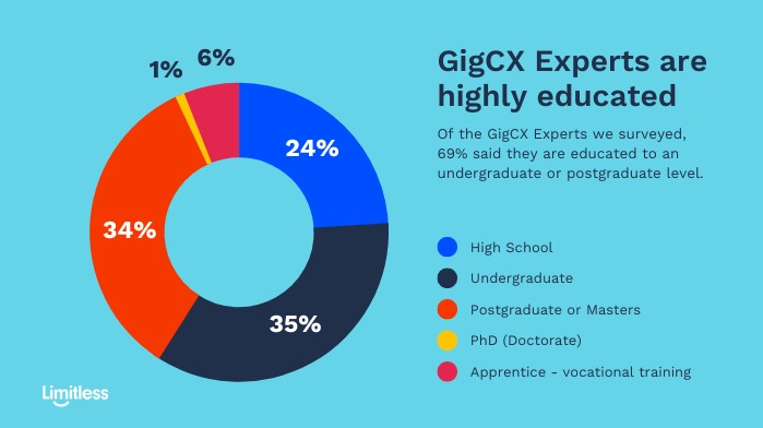 Of the GigCX Experts we surveyed, 83% said they are educated to an undergraduate level or above. Additionally, more than half (59%) are currently working as full- or part-time employees elsewhere, applying their existing skills to GigCX.