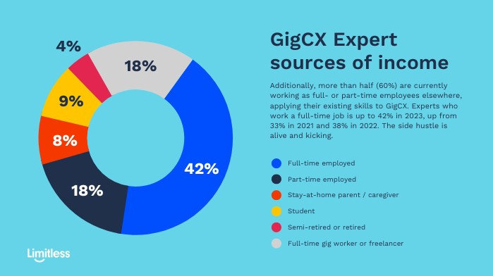 Additionally, more than half (60%) are currently working as full- or part-time employees elsewhere, applying their existing skills to GigCX.